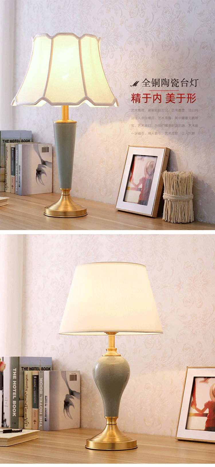 مصباح طاولة سيراميك أزرق من TUDA مقاس 33×60 سم على الطراز الأمريكي لغرفة المعيشة وغرفة النوم ومزهرية زرقاء ومصباح طاولة سيراميك مزخرف بجانب السرير