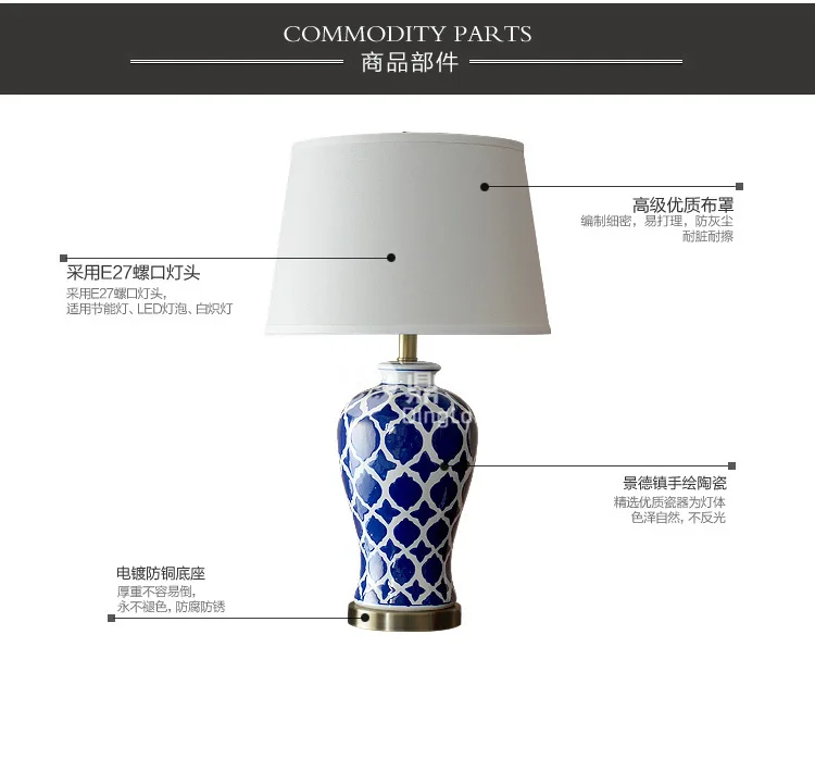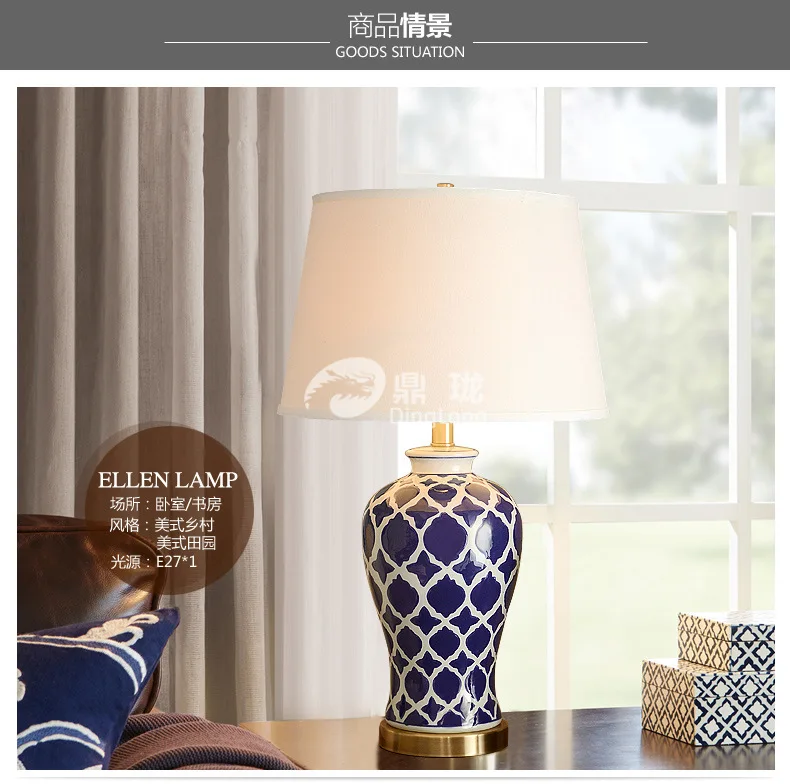 مصباح طاولة صيني الطراز مطلي يدويًا بسيراميك أزرق شبكي، يتميز بحرفية ممتازة تضمن جودة تدوم طويلًا. مناسب لمدخل الفندق، وغرفة النوم، وجانب السرير. استمتع بشحن مجاني مع تودا.